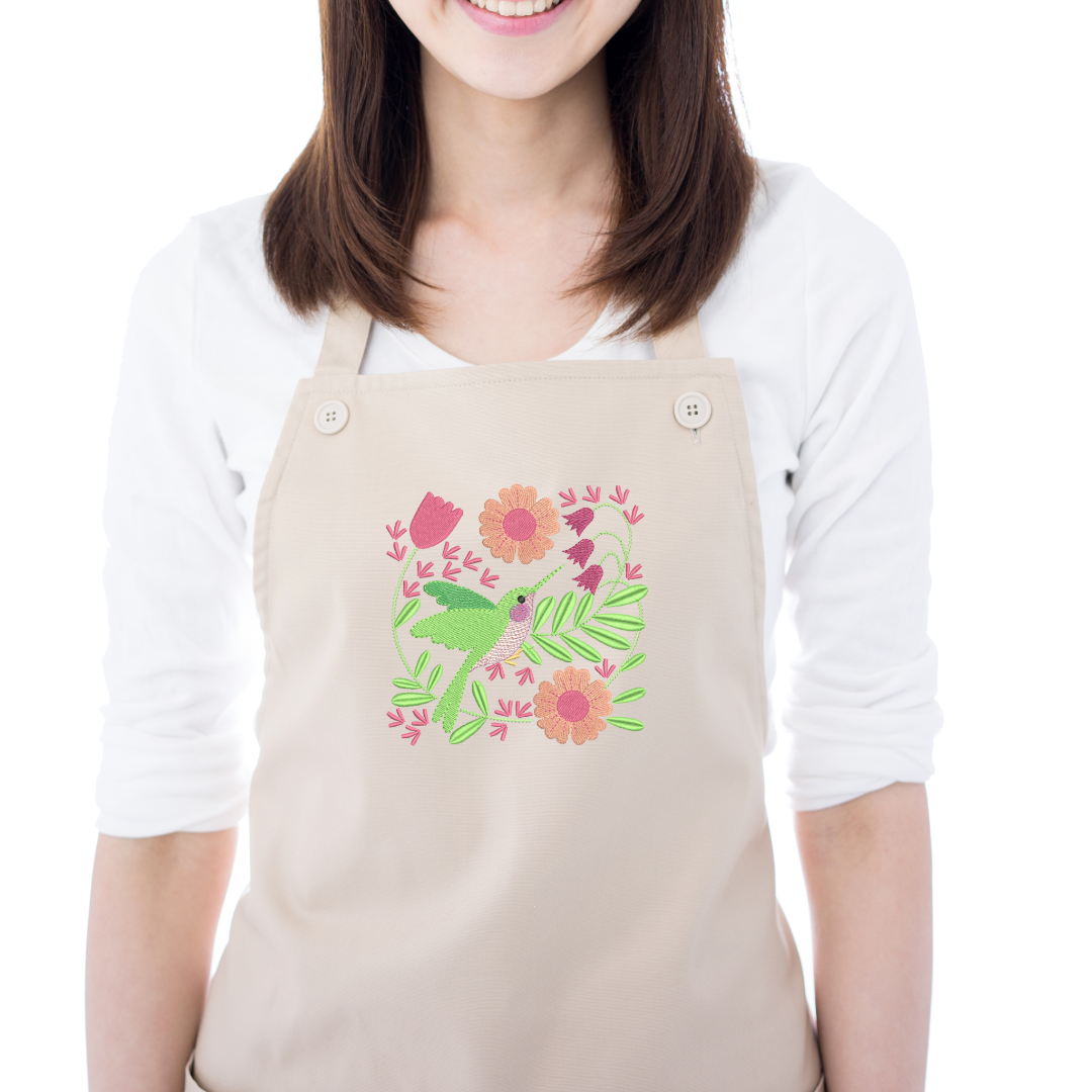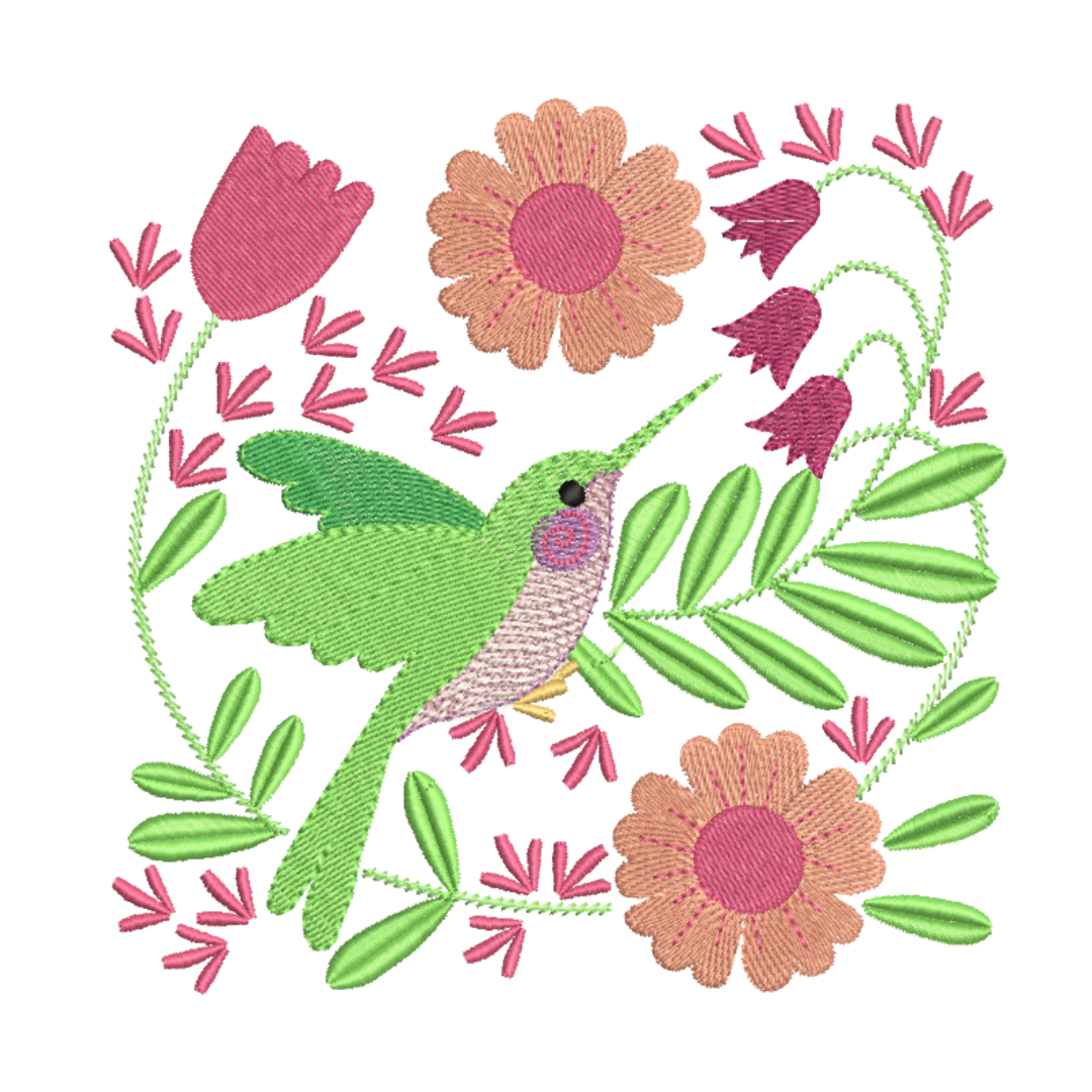 Hummingbird with Pink Flowers Machine Embroidery Design
