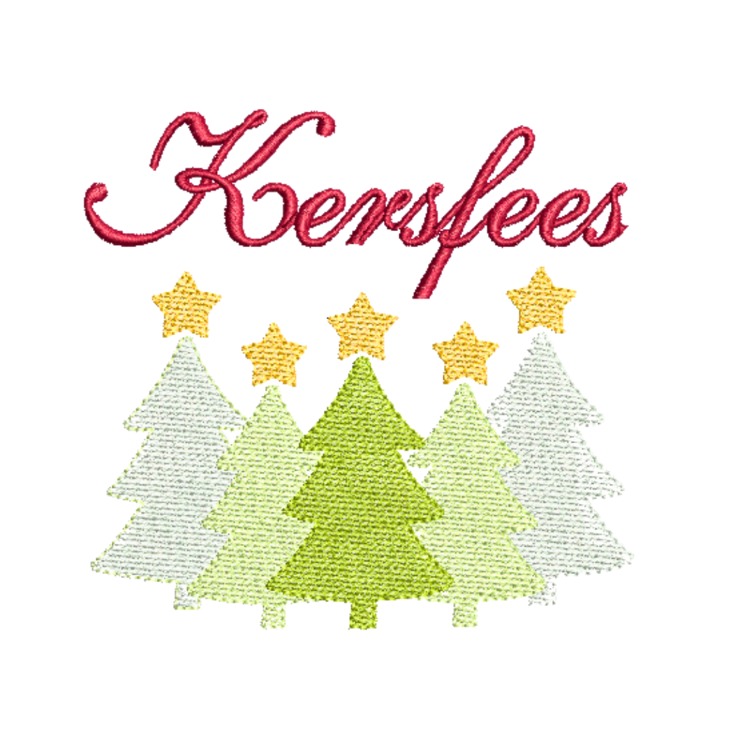 Our 'Kersfees' Afrikaans Quote Machine Embroidery Design is perfect for Christmas decor, aprons, oven mittens, tablecloths, gifts, and more.
