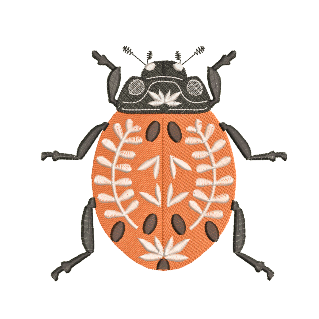 Embroider this ladybird machine embroidery pattern on denim pockets, cushions, towels, and more.