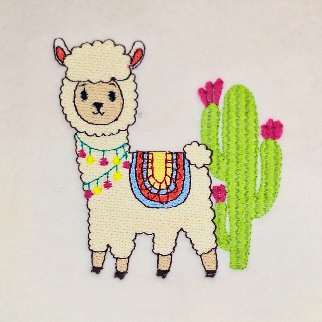 Llama with Cactus Machine Embroidery Design