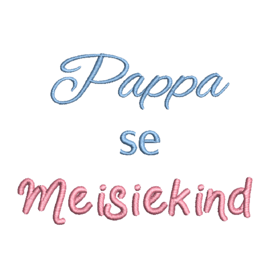 This "Pappa Se Meisiekind" Afrikaans Quote Machine Embroidery Design is for all the Daddy's Girls. Embroider onto baby onesies, girl's t-shirts, and more.
